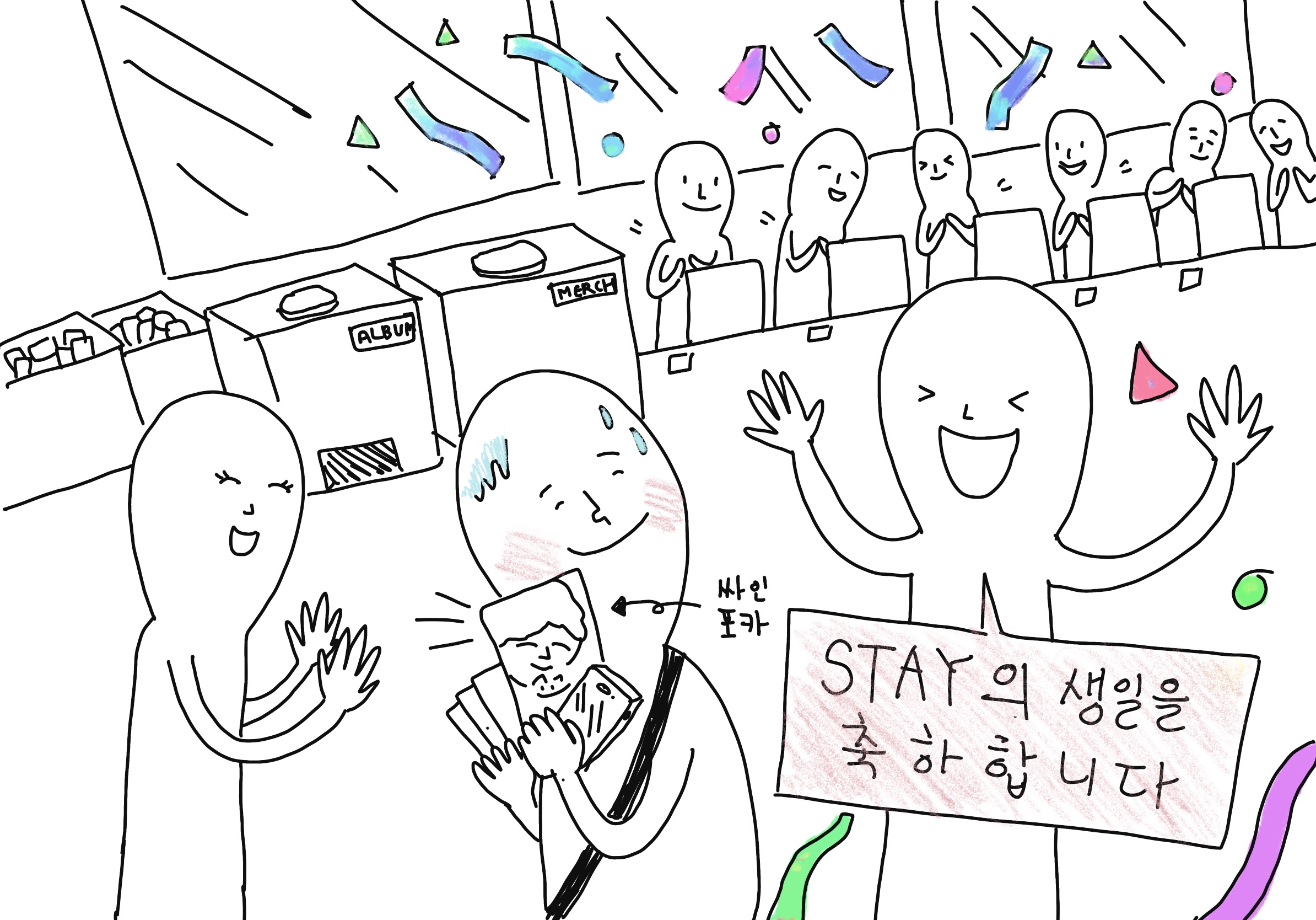 양 옆에서 ”스테이 생일축하합니다~~~>_<“ 하면서 하이텐션 리액션을 해주시니까 더 같이 호들갑떨게 됐다.